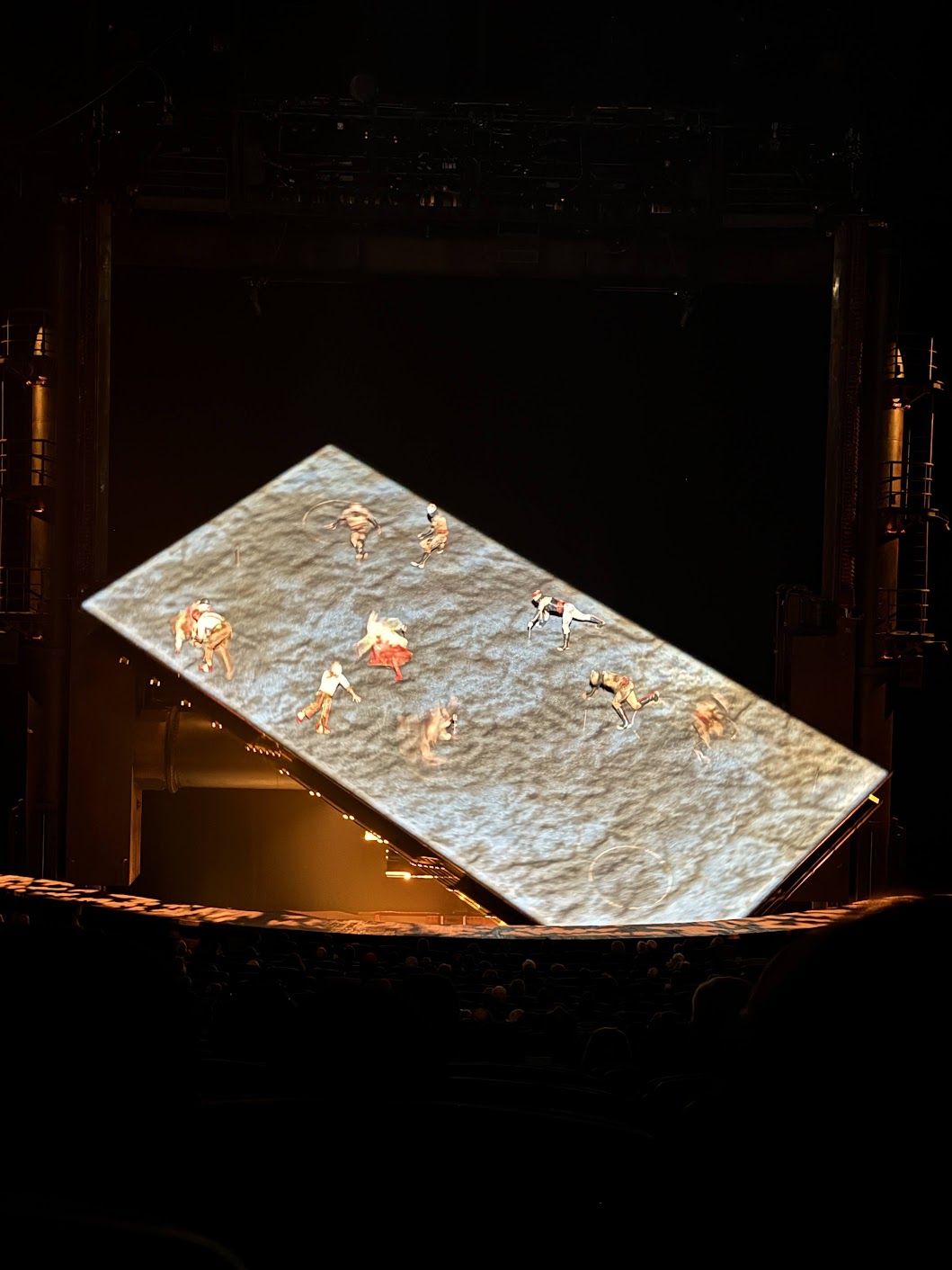 Het meest indrukwekkende? Zonder twijfel het kantelende podium. Wanneer het omdraait en volledig verticaal komt te staan, verandert de illusie compleet: de zwaartekracht lijkt niet meer te gelden. Artiesten lopen, vechten en vallen langs een muur die recht omhoog staat, alsof ze zweven in een droom. Het is technisch briljant, maar wat me vooral bijblijft, is dat elke truc betekenis heeft. Geen effect om het effect, maar om het verhaal te dienen.